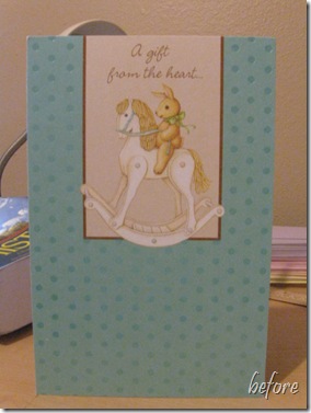 Needless to say, I probably won’t ever spend money on a card again, unless I’m in the market for a sound-making one or something. I even found a pack of 50 white, blank, single-fold cards for about $17 at Target with which I plan to make everything from birthday cards to sympathy cards using our stockpile of received cards yet to be “reinvented”. Such fun! I’m sure I’m not the only one to hatch this crazy plan – anyone else into becoming Edward Scissorhands with used cards? Do tell! I have a long life of card making ahead and more ideas I will need. :)